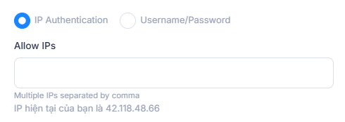 Khi bạn ấn sửa sẽ ra giao diện như hình dưới. Hệ thống sẽ giợi ý IP bạn đang sử dụng nếu bạn cần sử dụng IP đó thì chỉ việc Sao chép và Dán vào trong ô. Nếu bạn muốn sử dụng 1 địa chỉ IP khác thì bạn có thể check IP tại https://checkiponline.com Rồi sao chép dán vào ô IpAllow. Xong khi hoàn thành bạn Ấn vào Xác nhận đợi hệ thống cập nhập IP của bạn là xong